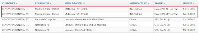 Untuk model XT1650-03 adalah Moto Z dengan spesifikasi chipset Qualcomm 820, 4GB RAM, internal storage 64GB, layar AMOLED 5.5 inch QHD, kamera belakang13MP, OS Android 6.0.1 Marshmallow, baterai 2600 mAh