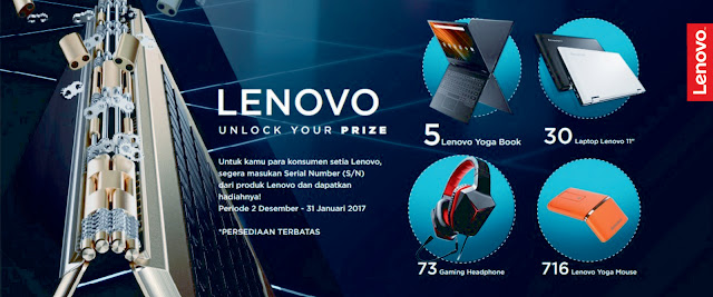 Menjelang pergantian tahun, lenovo Indonesia menggelar program promo " Unlock Your Prizes " Promo yang dikhusukan untuk konsumen Indonesia yang akan mendapatkan hadiah menarik apabila membeli salah satu produk Lenovo yang bergaransi resmi dari PT. Lenovo Indonesia. Promo ini dimulai tanggal 15 November 2016 kemarin hingga 31 Januari 2017.