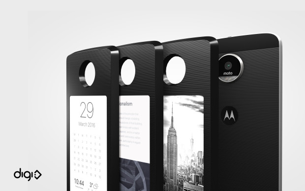 DigiFrameMod adalah Mod yang memberikan tambahan layar "always on" dibelakang Moto Z untuk menampilkan berbagai informasi. Pegguna tidak perlu lagi membuka smartphone lagi hanya untuk melihat jam atau cuaca di kota anda. Selain itu DigiframeMod bisa ditempel di kulkas untuk memberikan informasi di dalam rumah untuk keluarga Anda.