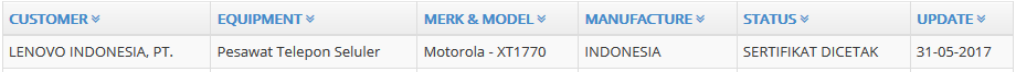 Ponsel terbaru Motorola yaitu Moto E4 sudah mendapatkan setifikasi dari Ditjen Postel. Ponsel rilisan terbaru ini tercatat di Ditjen Postel dengan kode Motorola XT1770 dengan status "Sertifkat Dicetak"