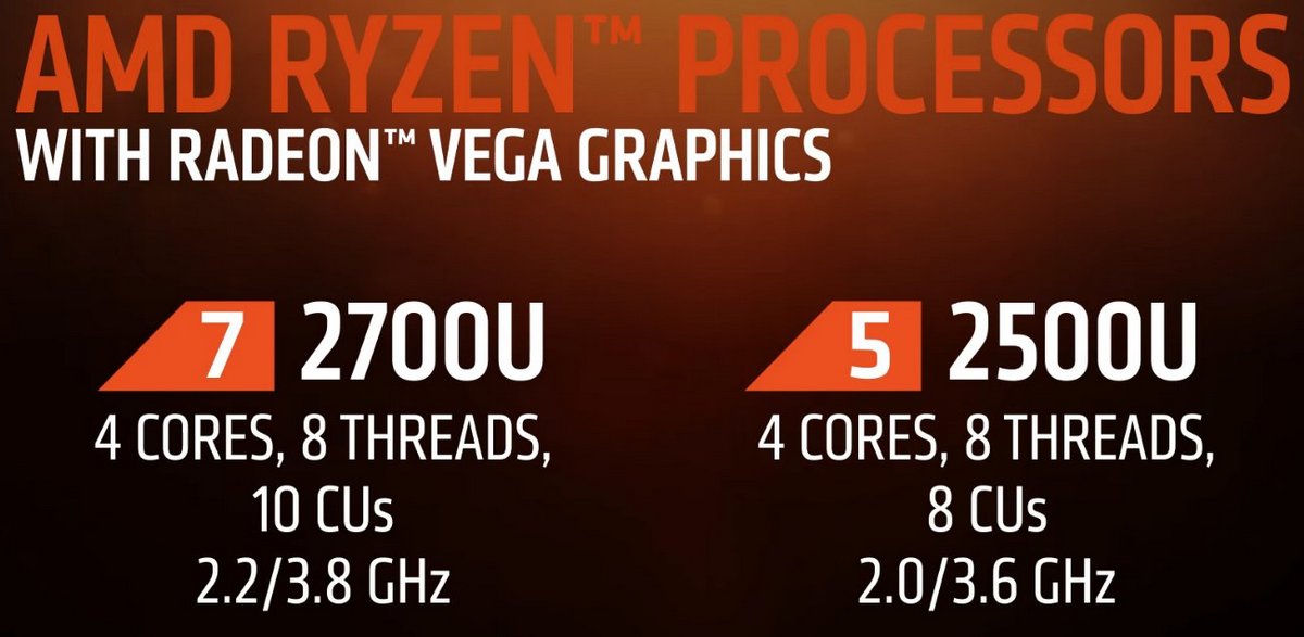 Prosesor AMD identik dengan kemampuannya untuk bermain game. Processor Ryzen ini hadir Radeon Vega terintegrasi dengan dua varian, yakni Ryzen 7 2700U dan Ryzen 5 2500U. Keduanya menawarkan kekuatan dengan konfigurasi 4-Core 8-Thread core “Zen” di dalamnya dengan dukungan 10 Compute Unit grafis Radeon Vega untuk varian Ryzen 7 dan 8 Compute Unit grafis Radeon Vega untuk varian Ryzen 5. Keduanya hadir dengan TDP 15W, sehingga sangat hemat daya dan cocok sekali untuk diaplikasikan ke laptop Ultrathin seperti Ideapad 720s