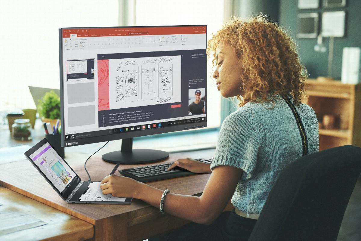 Monitor Lenovo terbaru dengan ukuran layar 27-inci Full HD tanpa bingkai. Monitor ini dapat dihubungkan ke berbagai perangkat, mengurangi jumlah kabel dan pada saat yang sama memungkinkan transfer data dan koneksi yang sederhana dan cepat dengan satu kabel, berkat port USB Type-C yang serbaguna.