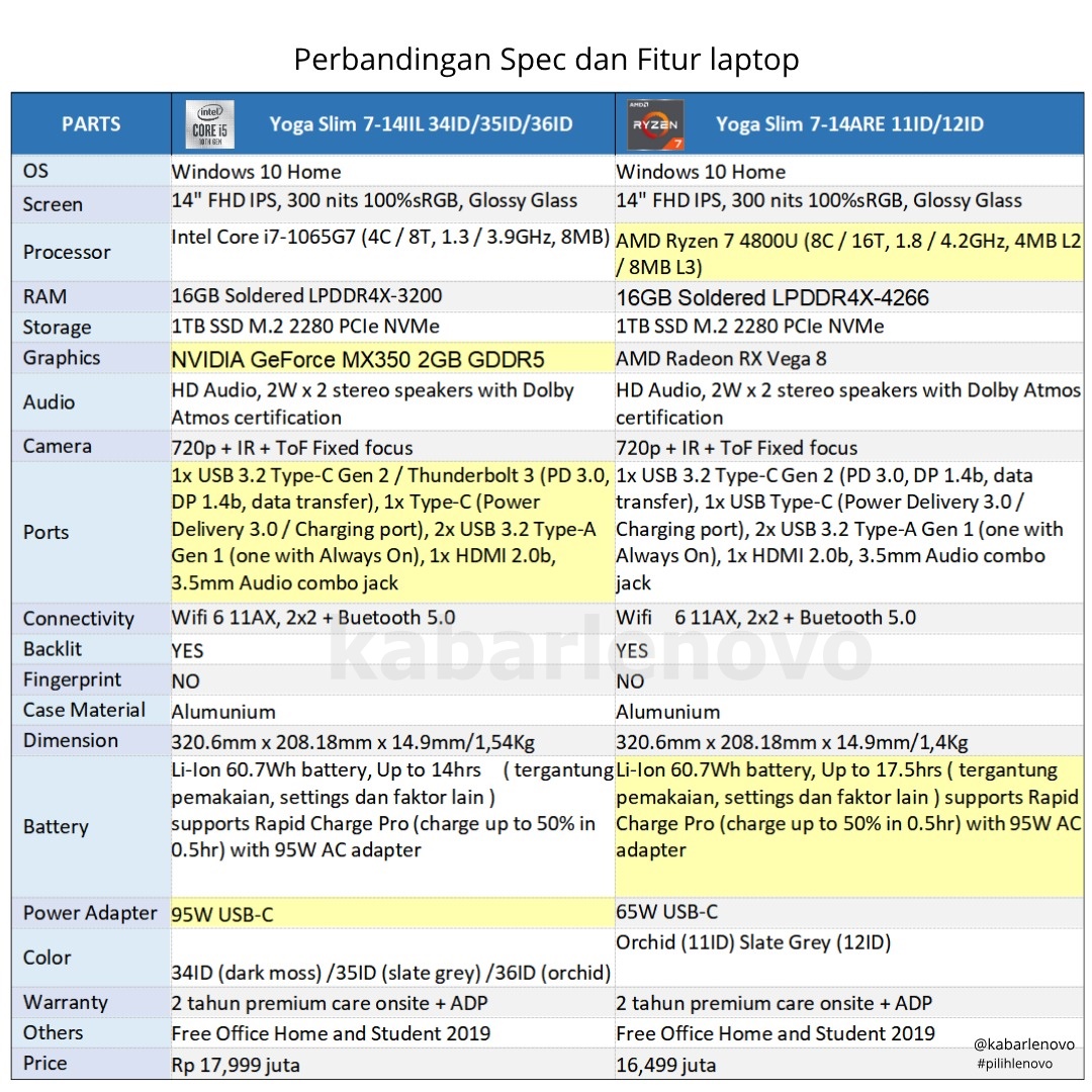 Untuk memudahkan memilih diantara kedua laptop tersebut, dibawah ini terdapat tabel perbandingan spesifikasi, fitur dan harga dari kedua laptop ini